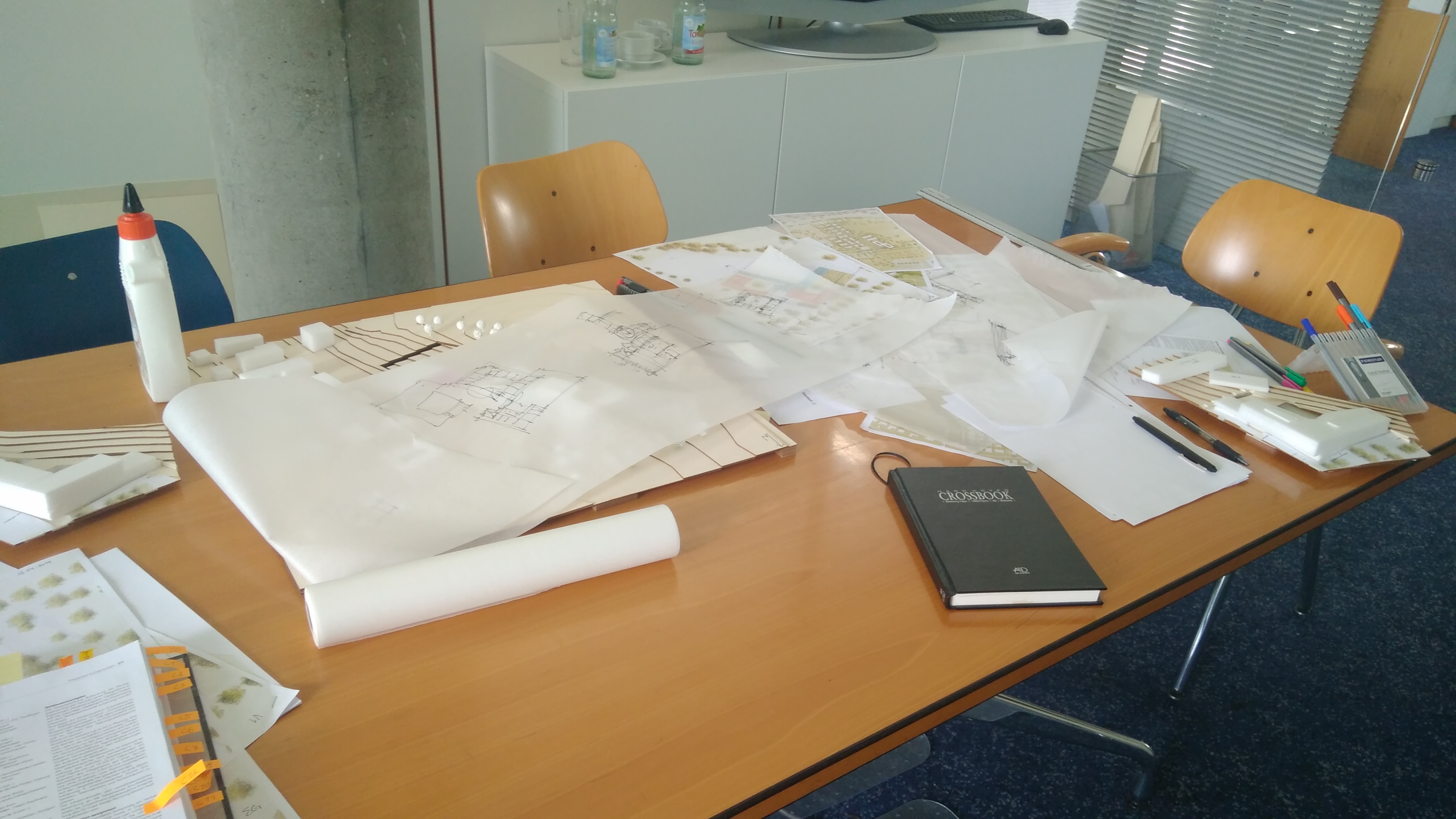 나는 이 회사에서 현상설계에 주로 참여하고 있다. 음, 그러니까 건축설계 과정을 전체로 볼 때, '건축계획'(건물의 외관, 콘셉트, 디자인, 면적, 아주 개략적인 공사비 등)에 해당하는 단계의 일들을 하고 있고, 이번에 마감한 프로젝트부터 혼자서 진행하고 있다. 어려운 점이라면, 콘셉트 단계에서 아이디어들을 독일어로 설명해야 하는데 여간 어려운 게 아니다. 그래서 조금 더 많은 이미지들을 만들어가서 보여줘야 한다. 가끔은 철학적인, 가끔은 논리적인 이야기를 해야 하는데 내 독일어 수준은 딱 회화(?) 정도의 수준인지라....ㅜㅜ