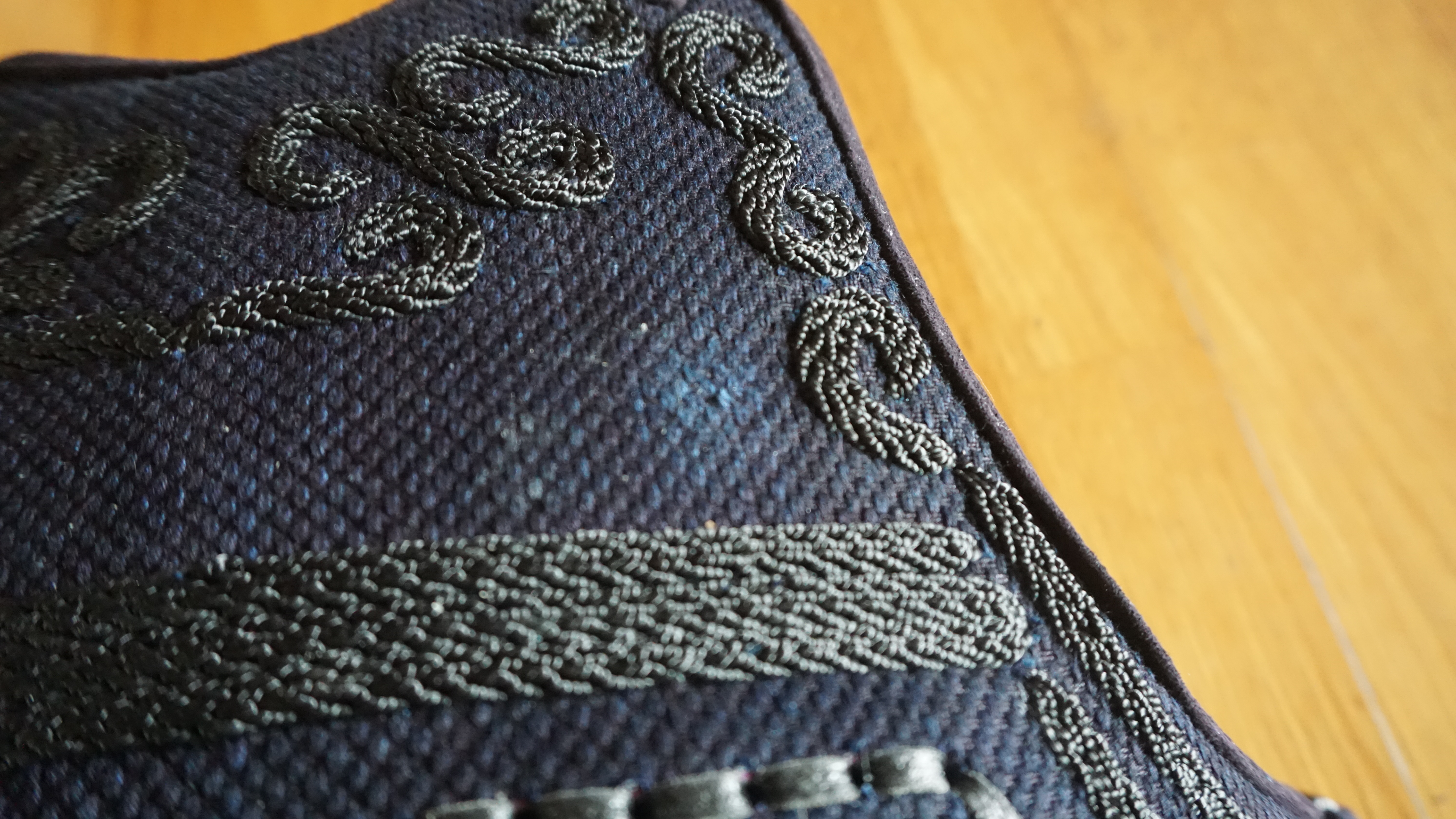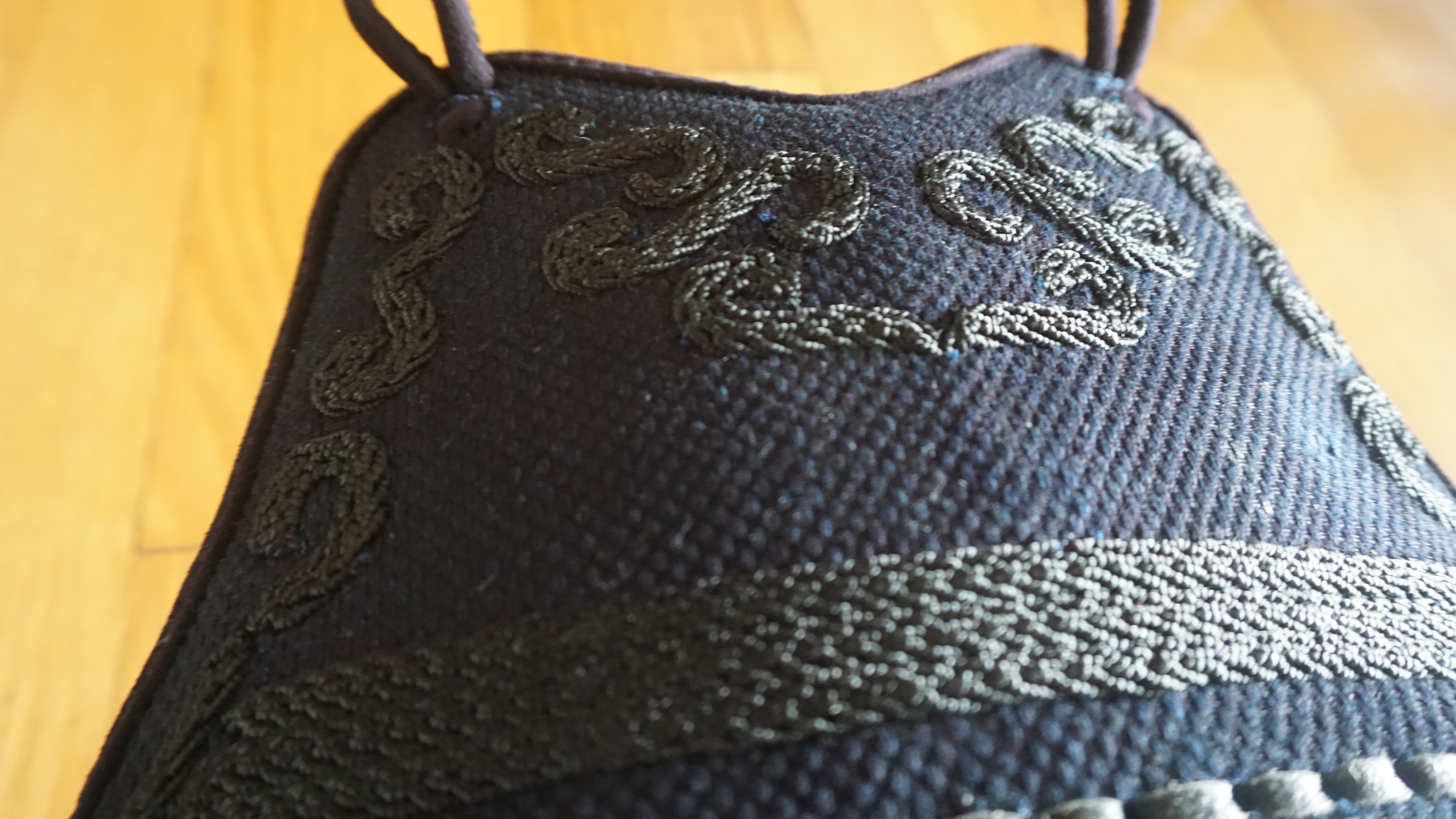 4.5mm로 박음질 된 호면의 옆모습이다. 색감이 참 마음에 든다. 미싱 호구인지라 하나하나 디테일한 부분을 따지기엔 무리가 있는 것 같다. 그럴꺼면 수제호구를 사야한다. 신켄무도구의 가장 큰 장점은 가성비다. 이점을 잊지말자.