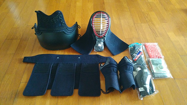 기본적인 구성품은 호면, 호완, 갑, 갑상, 호면끈, 호면가죽끈으로 되어있다. 사진에 나와있는 손목보호대, 면수건, 죽도유 등은 내가 추가로 구매한 상품이고, 신켄무도구 사장님께서 몇 가지 제품을 서비스로 업그레이드 시켜주셨다...