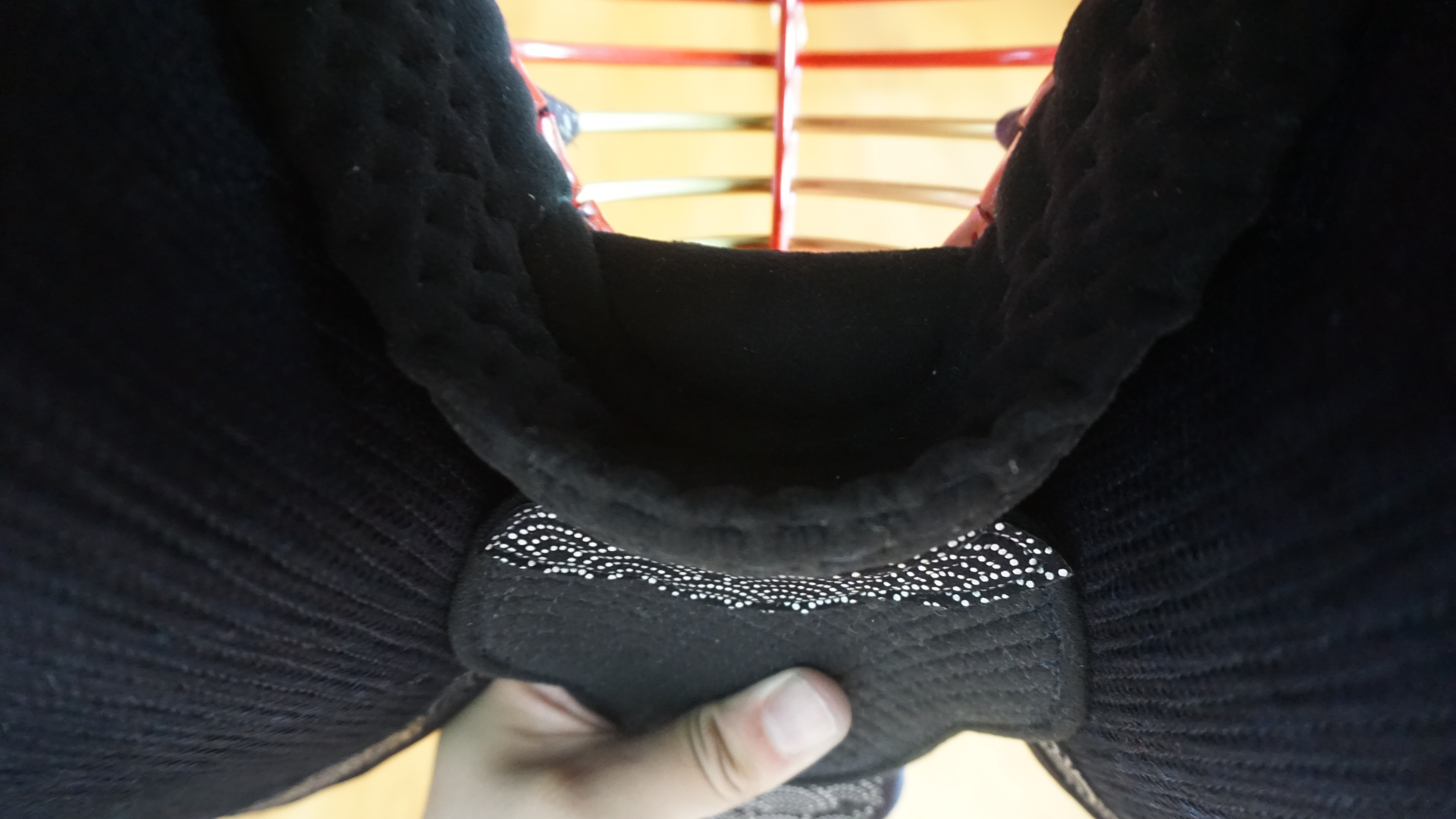 역시 4.5mm로 박음질 되어있고, 두툼하지만 많이 가볍다. 그 외에 특별한 것은 없다. 갑상 테두리를 해리로 마감할 것인지 아니면 봉투(테두리에 천을 덧대지 않고 마감하는 방식)로 마감할 것인지 정도를 선택할 수 있다. 나는 연습용 호구로 구입한 것인 만큼 튼튼하게 해리로 마감하였다.