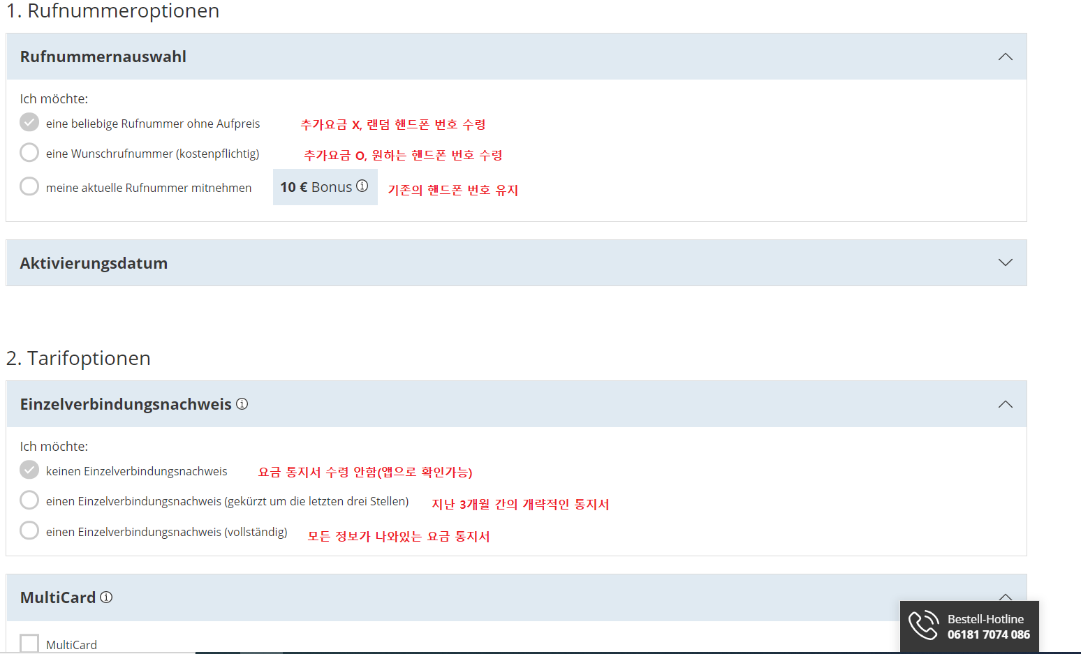 이 유심으로 바꾸기 위해서는 먼저 본인이름의 독일계좌를 소유하고 계셔야 합니다. 본인이 희망하시는 요금제를 선택하시고, Bestellen(주문하기) 버튼을 누르면 아래와 같은 창이 나옵니다. 모든 정보들을 기입하면, 드디어 주문이 완료됩니다.