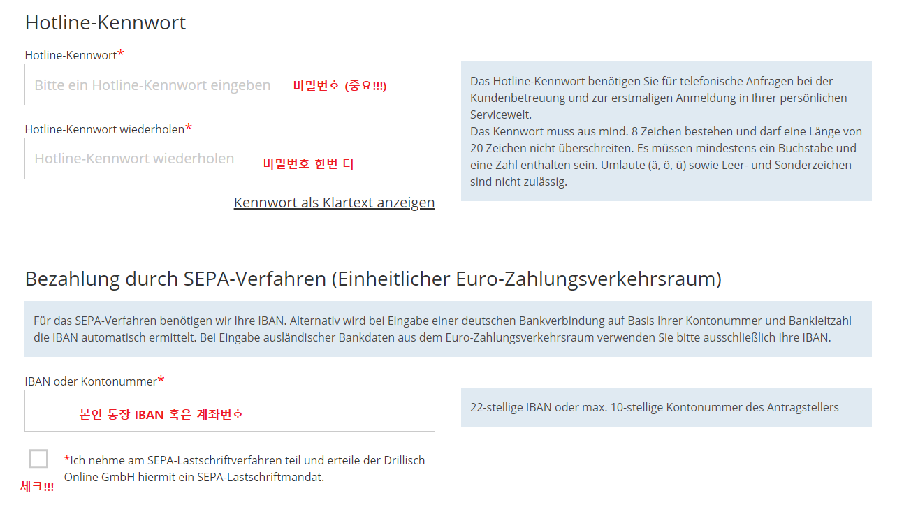 비밀번호는 본인이 까먹지 않도록 꼭 기억하세요! 나중에 유심칩이 오고나면, 본인의 아이디(Benutzernummer)와 본인이 설정한 비밀번호로 로그인을 해야합니다.