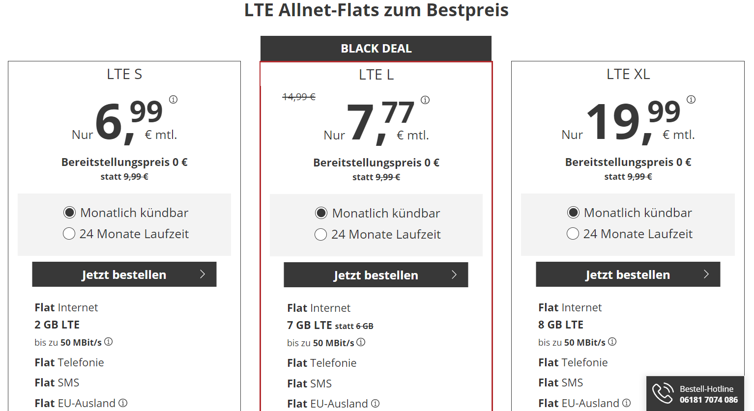 블랙 프라이데이가 되니, 독일의 알뜰통신사(가령 Winsim, PremiumSim)에서 많은 할인행사를 진행하더라고요. 그 중 저는 프리미엄심의 Angebot가 가장 좋을 것 같아서 선택했습니다. 블랙 프라이데이 행사의 장점이라면, 평소보다 저렴한 이용요금 뿐만아니라, 통신사 가입비(대략 10유로 정도)도 없습니다. 또 매달 해지가 가능하고, 독일의 O2 통신사 망을 이용합니다.