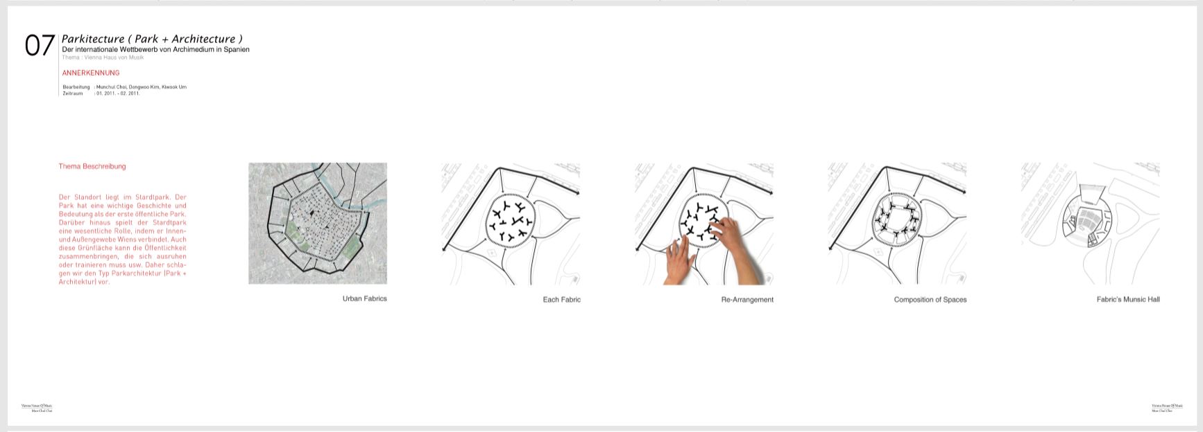 여백은 포트폴리오 요소(텍스트, 이미지, 다이어그램 등)에 위계를 만들어 주는 요소이다. 위계를 만든다는 것은 포트폴리오 페이지를 폈을 때 어디로 시선을 두게 할 것인지와 관련이 깊다. 두가지 경우로 한번 살펴보자. 작품을 보여주는 방식에는 많은 방법들이 있지만, 직관적으로 이해하기 쉽게 두가지를 예로 들어보자. 어떤 작품은 이미지(모형사진이든, 3D 이미지든) 하나로 작품의 모든 설명이 가능할 수도 있고, 또 어떤 작품은 발전과정(프로세스) 자체를 컨셉으로 보여줄 수도 있다. 여기서 여백은 어떻게 기능할까?
