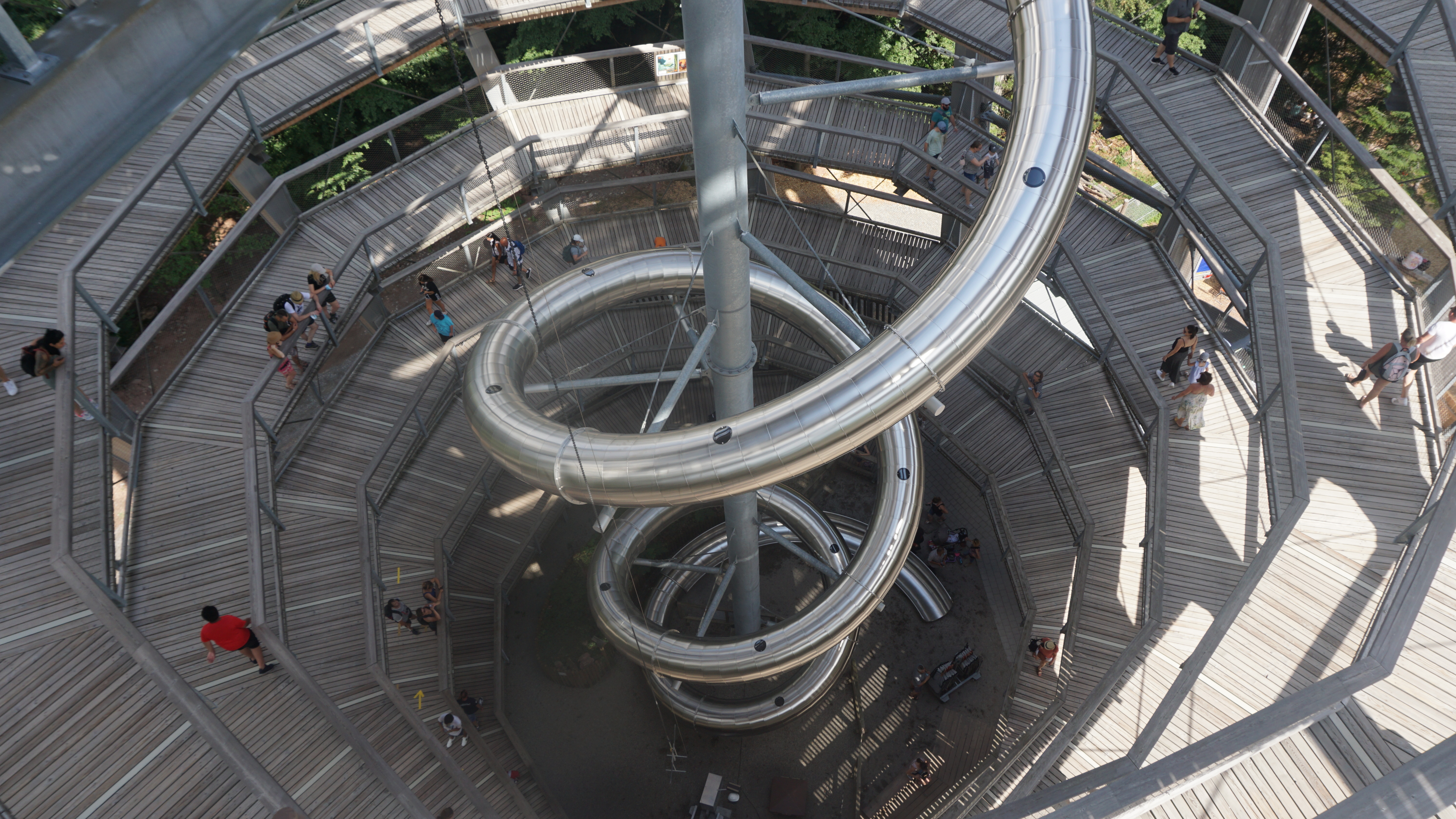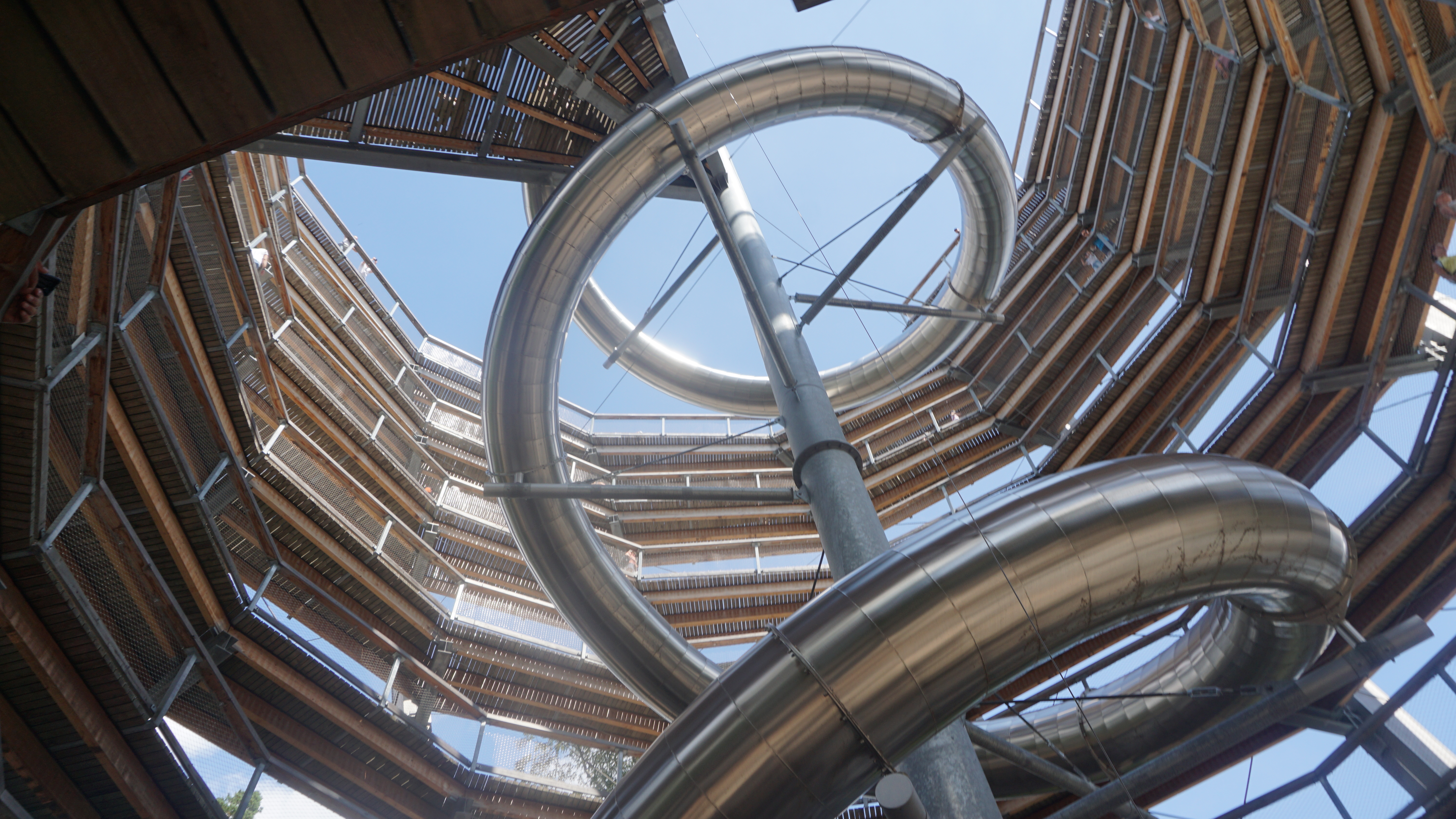 꼭대기까지 올라와서 한숨돌린 후, 아들과 내 인생에서 가장 긴 미끄럼틀을 탔다. 이 미끄럼틀을 타려면 2유로를 내야한다. 2유로 정도의 값어치는 하는 것 같다. 엄청 재미지다.