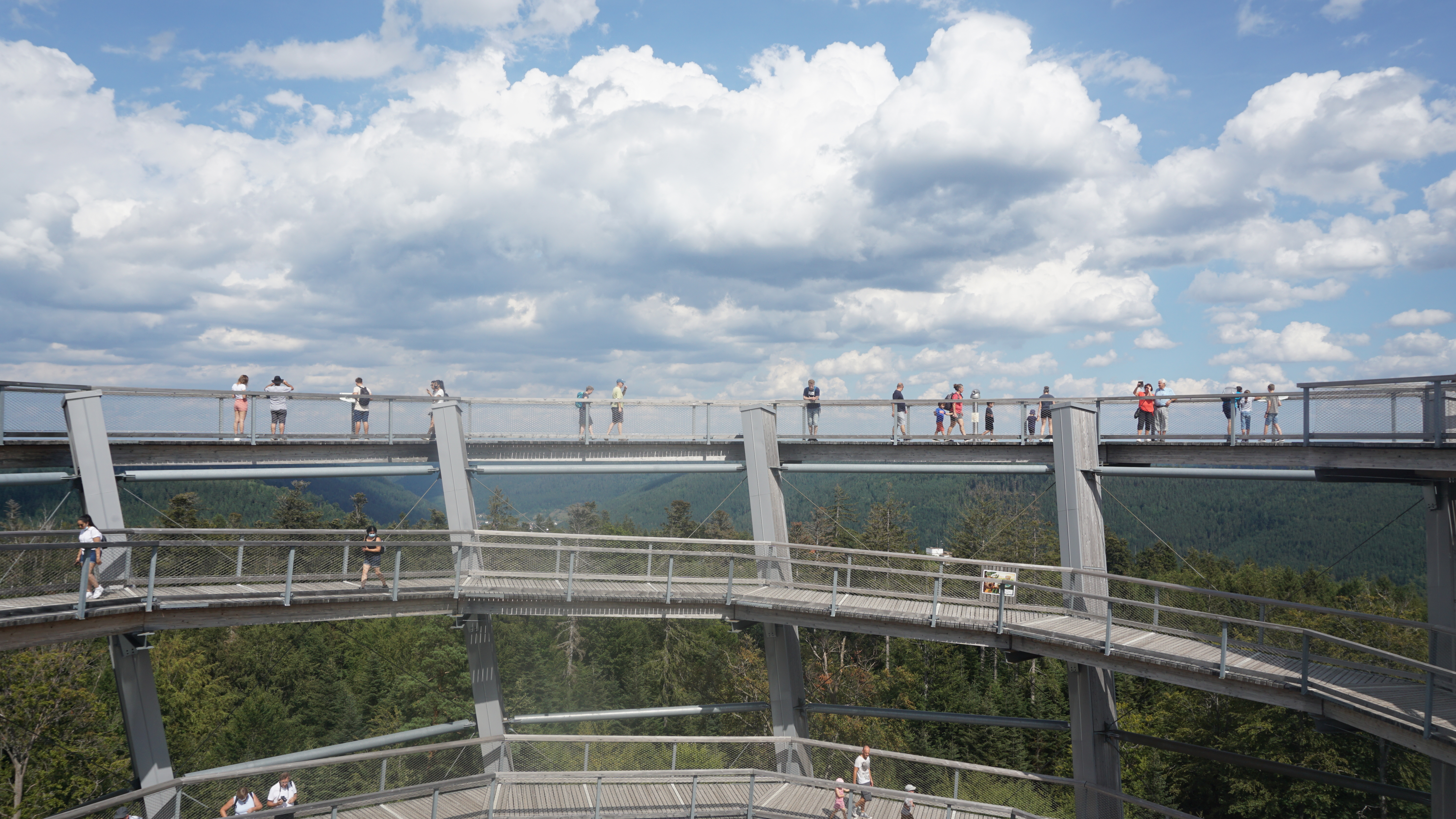 독일 남서부 지역에는 슈바츠발트(Schwarzwald)라는 지역이 있다. 직역을 하면, Schwarz(검은)wald(숲) 이다. 초록 나무들이 빽빽히 서있는 모습을 멀리서 보면 마치 검은 숲 처럼으로 보인다하여 붙여진 이름이라고 한다. Baumwipfelpfad는 이 슈바츠발트를 한눈에 담을 수 있는 전망대 구조물이다. 그 주변으로는 아름다운 산책길도 있고, 아이들이 놀 수 있는 놀이터(유료)도 있어서 가족끼리, 연인끼리, 아이들과 함께 가도 좋은 곳이다.