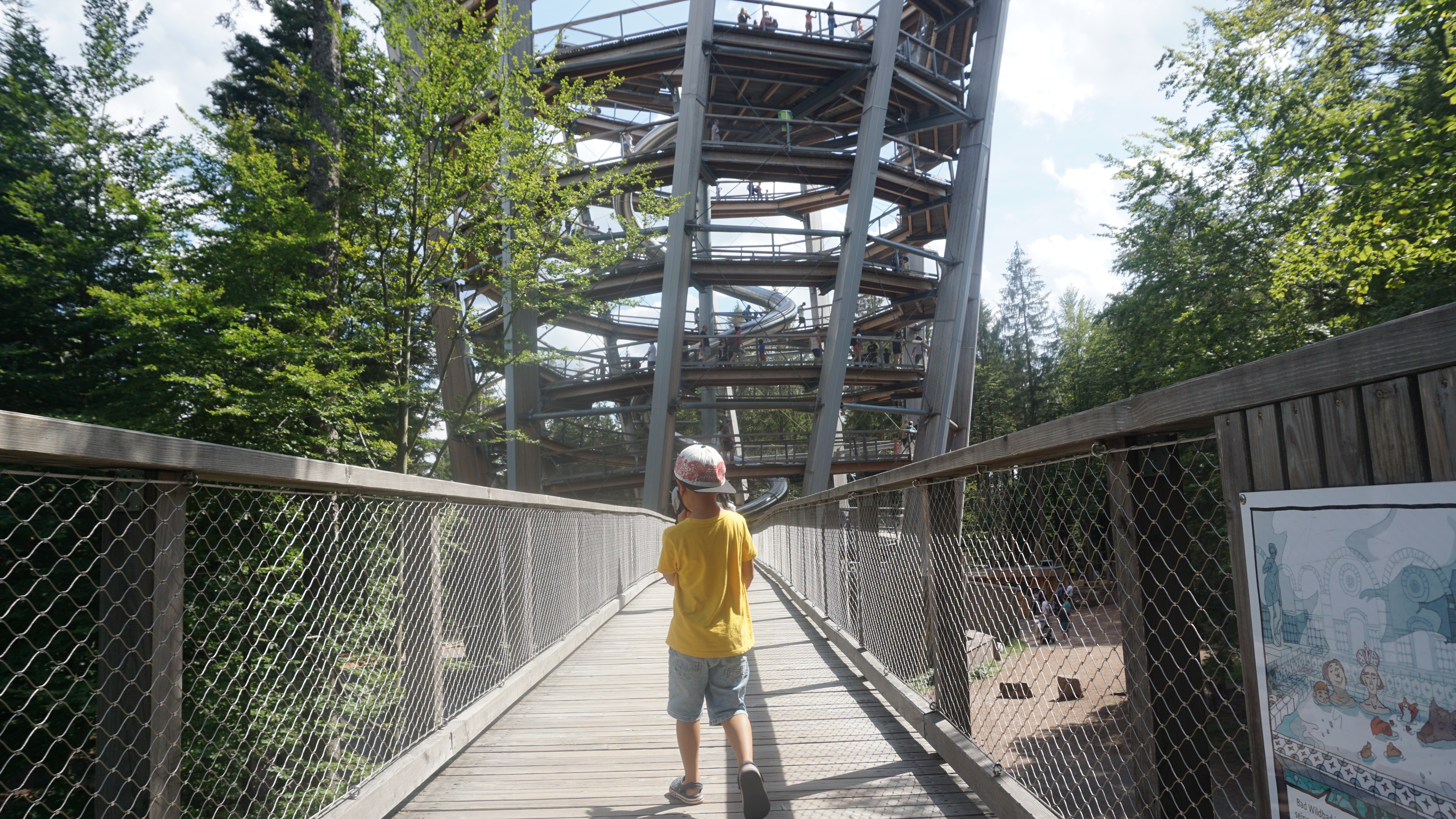 독일 남서부 지역에는 슈바츠발트(Schwarzwald)라는 지역이 있다. 직역을 하면, Schwarz(검은)wald(숲) 이다. 초록 나무들이 빽빽히 서있는 모습을 멀리서 보면 마치 검은 숲 처럼으로 보인다하여 붙여진 이름이라고 한다. Baumwipfelpfad는 이 슈바츠발트를 한눈에 담을 수 있는 전망대 구조물이다. 그 주변으로는 아름다운 산책길도 있고, 아이들이 놀 수 있는 놀이터(유료)도 있어서 가족끼리, 연인끼리, 아이들과 함께 가도 좋은 곳이다.