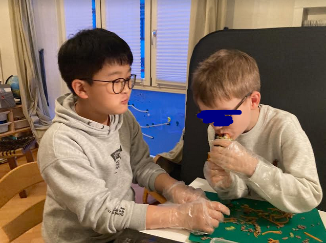 김밥 싸면서 두 녀석이 사이좋게 우걱우걱 먹어재끼더니