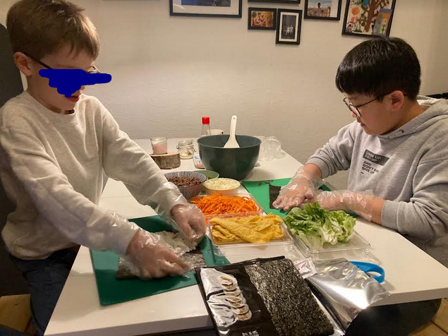 두 녀석은 왠일인지 정상적으로 김 위에 밥에 펴바르기 시작하더니.