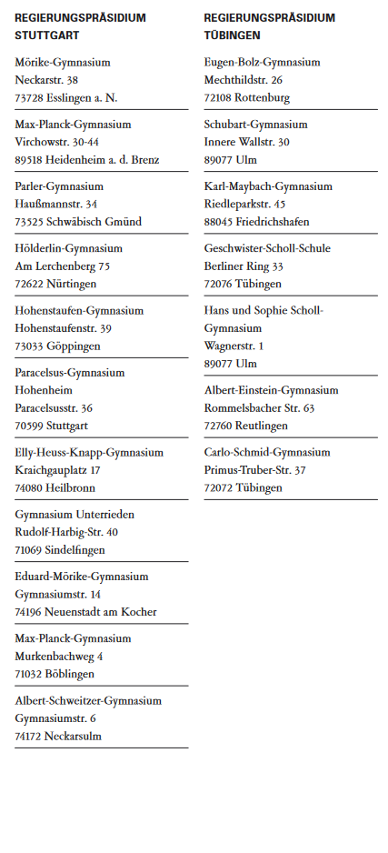 아래는 BW주에서 이중언어 교육을 지원하는 모든 김나지움(A)에 대한 리스트입니다.