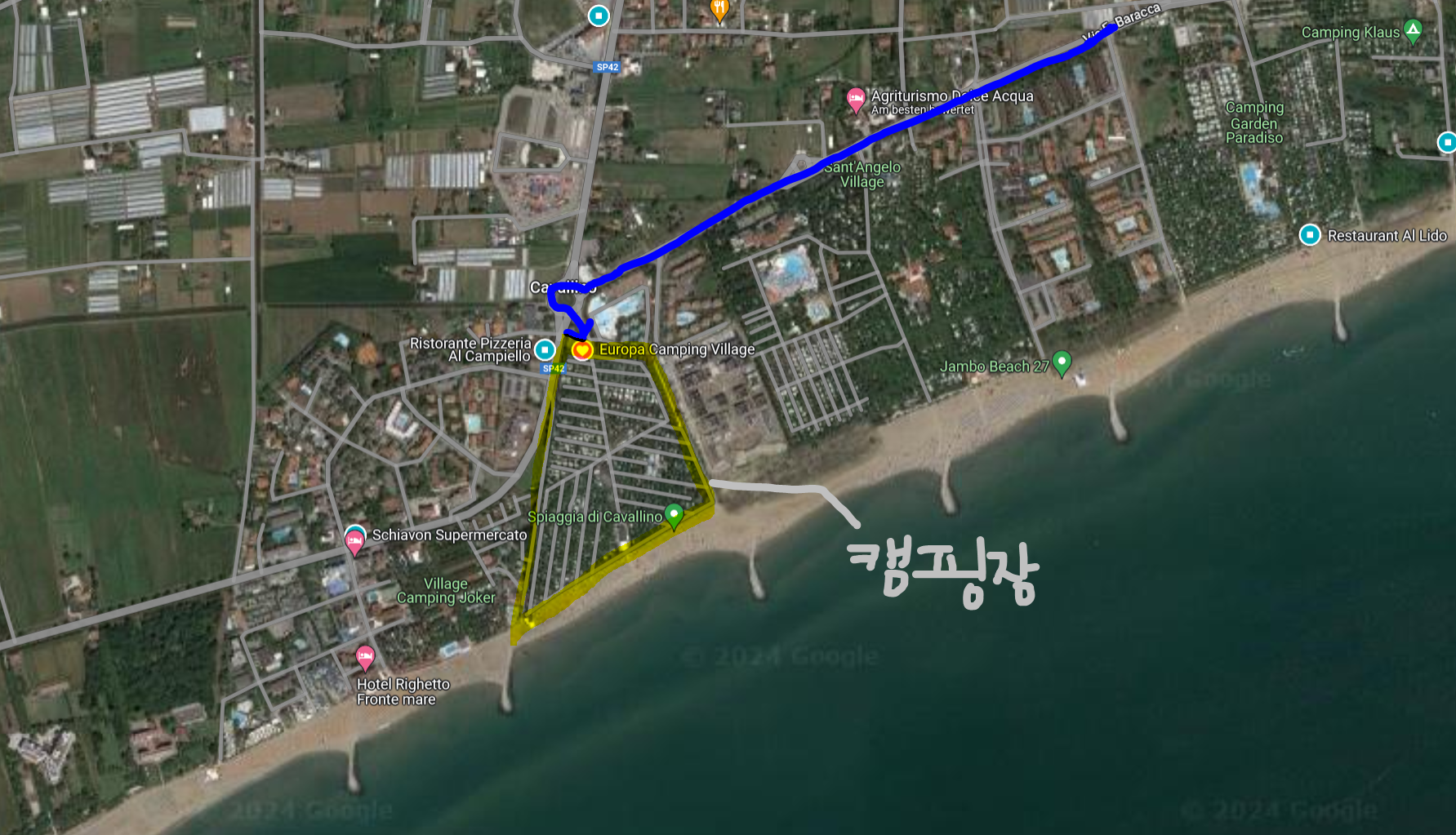 | - 캠핑장 이름 : Europa Camping Village ( https://www.campingeuropa.com ) - 캠핑장 위치 : Via Fausta, 332, 30013 Cavallino-Treporti VE, Italien - 가격 : 이탈리아 기준 4성급, 텐트 기준 1박에 90유로 선 - 참고사항 : 유럽의 대표적인 휴양지라 예약이 매우 일찍 마감되므로 12월 쯤에 미리 예약을 해두는 것을 추천 (예 : 2024년 8월 휴가 예정이라면 2023년 12월 혹은 그 전후로 예약) - 기본시설 : 캠핑장 내 수영장, 헬스장, 마트, 식당, 기타 상점, 해변 등 |