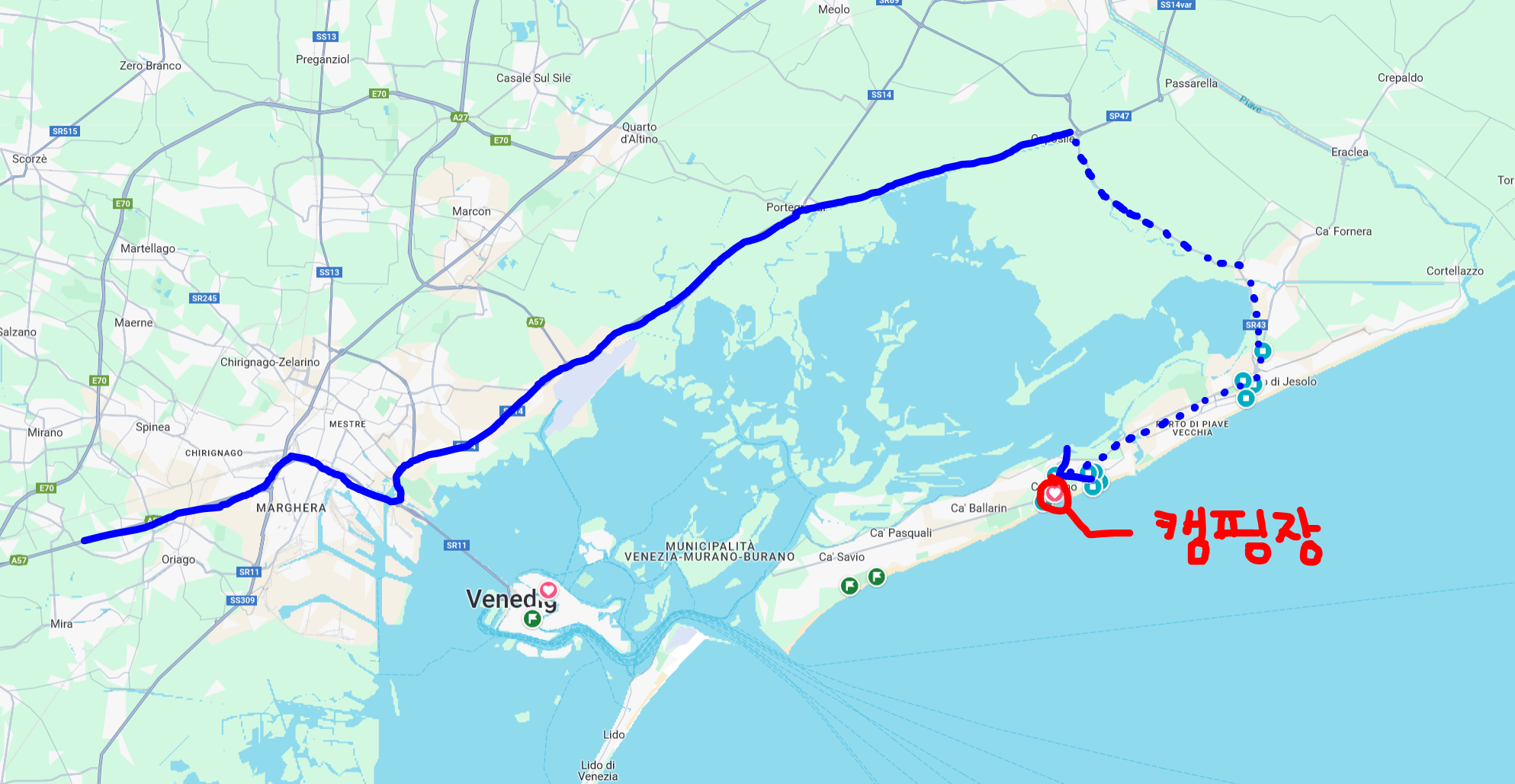 - 캠핑장 이름 : Europa Camping Village ( https://www.campingeuropa.com ) - 캠핑장 위치 : Via Fausta, 332, 30013 Cavallino-Treporti VE, Italien - 가격 : 이탈리아 기준 4성급, 텐트 기준 1박에 90유로 선 - 참고사항 : 유럽의 대표적인 휴양지라 예약이 매우 일찍 마감되므로 12월 쯤에 미리 예약을 해두는 것을 추천 (예 : 2024년 8월 휴가 예정이라면 2023년 12월 혹은 그 전후로 예약) - 기본시설 : 캠핑장 내 수영장, 헬스장, 마트, 식당, 기타 상점, 해변 등 |