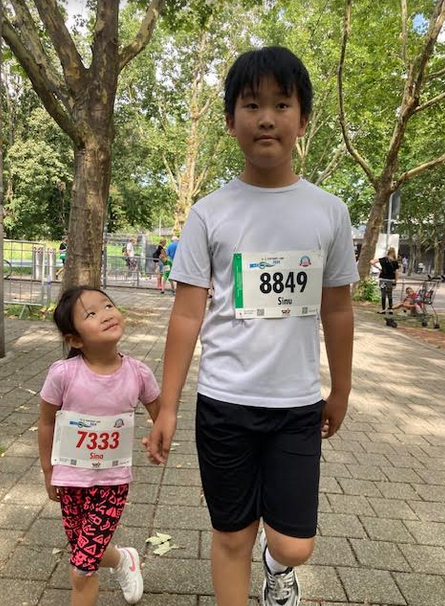 대회 전날까지 신우는 기침이 심해 내년에 참여하는 게 낫겠다 싶었는데... 대회 당일에는 컨디션이 정말 많이 괜찮아져서 고민끝에 무리하지 않는 선에서 달려보자로 가닥을 잡았다. 1.4km는 평소에 운동하지 않은 어른은 쉬지않고 달리기 힘든 거리인데, 레이스 중반에 신우가 조금 힘들어해서 페이스를 유지할 수 있도록 나도 함께 달렸다. 아직 신우 몸이 온전치 않아 호흡하기 쉽지 않았을텐데도, 포기하지 않고 무사히 완주한 신우가 참 대견하다.