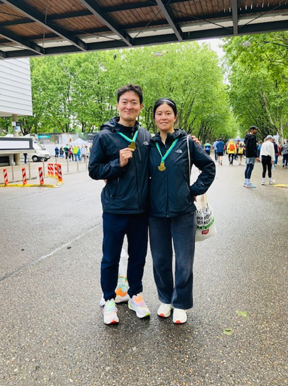 아내는 마지막까지 참가할지 말지 고민하다가 이번에 5km 레이스에 참가했다. 아이들 챙기랴, 일상 돌보랴 늘 본인 시간을 뒤로 미뤄두는 사람이기에 이번 도전이 더 특별했다. 연습할 시간이 많진 않았지만, 그럼에도 포기하지 않고 끝까지 뛰어낸 모습에 마음속으로 엄지를 치켜세웠다. 엄마이자 아내이자 러너로서의 도전이 무척 빛났던 순간이었다. 5km 완주를 하고, 인생에서 많은 것을 깨달(?)았다며 주저리 주저리 이야기하는 모습이 역시 우리 와이프 다웠다 ㅎㅎㅎ